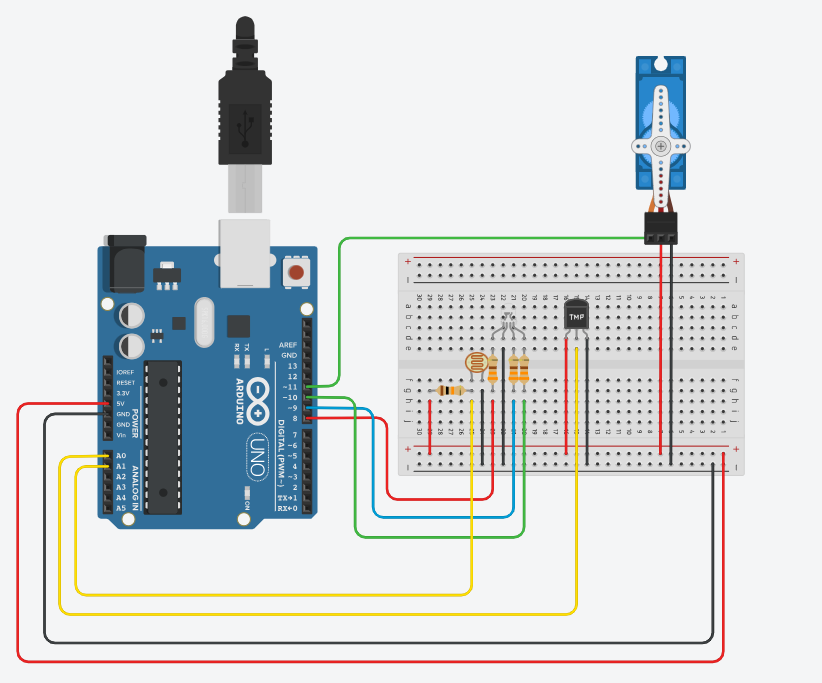 Luua süsteem, mis automaatset juhib kasvuhoone valgustust ja ventilatsiooni, sõltuvalt temperatuurist ja valgusest.