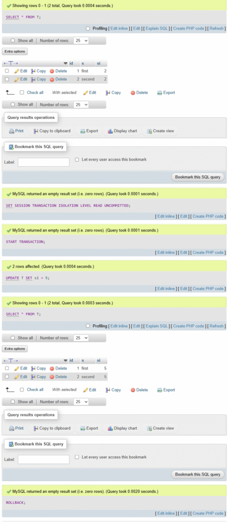Kui keegi teine, n@iteks, avab uus QUERY ta ei saa n@ha muudatused, sest nad ei ole kinnitatud ja andmed on LOCKirud. Aga ta saab teha seda: