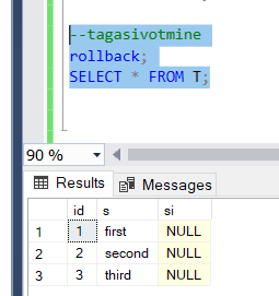 Luuame transaction kasutades UPDATE: