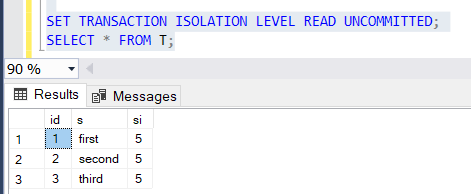 Tavaliselt SQL serveris on default Transaction Isolation Level on READ COMMITED, seeparast ei saa kasutada andmeid voi n@ha muutatuseid kui transaction on veel uncommitted. Kui muudame Isolation Level siis saame n@ha uncommitted muudatused.