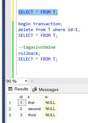 transaction mis salvestab uuendamine ja votab tagasi: