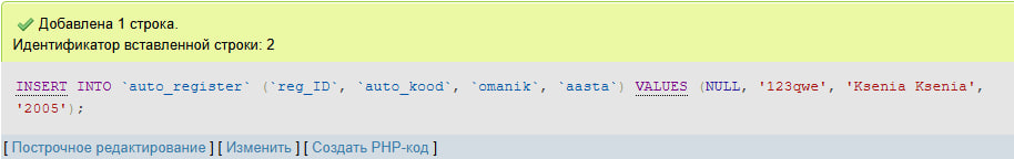 Mõelge ise automaatse registreerimise tabeli väljadele ja andmetele.