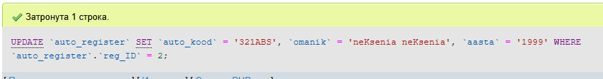 Uuendame tabeli: